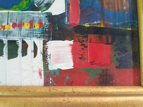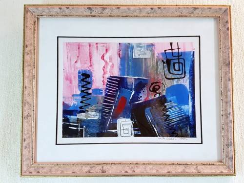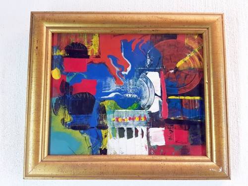 Two stunning abstract paintings by this talented artist. The colors are vibrant and the paintings are beautifully executed. The one painting is a mixed media and the other an oil. The paintings measures 27cm x 20cm and 25cm x 19.5cm respectively and the frames measures 40cm x 32.5cm and 32cm x 27cm respectively. Own these little treasures, bid now!