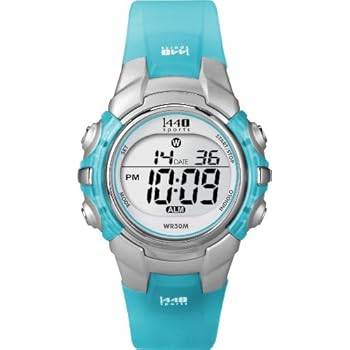 The Timex Women's T5K460 1440 Sports Digital Mid-Size Watch offers a crisp, digital dial with a 24-hour chronograph, 24-hour countdown timer, and a daily alarm.