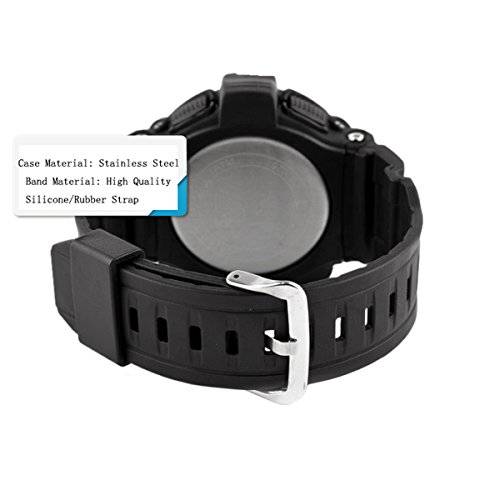Features Case Material: Stainless Steel Material: High Quality Silicone/Rubber Strap Waterproof: 50M water resistance Clasp: Buckle Fit Wrist: 165-235mm Band Width: 24mm Case Diameter: 50mm Watch Face Size: 45*45mm LCD display. Night vision mode supports five colors changeable LED background light Digital time display:Date/Day/Hours/Minutes/Seconds 3modes:Time/Alarm/Chronograph Note: Water resistant (You can swim and take a shower with wearing it(In addition to a hot bath); but please don't press any keys when underwater; or it will stop its normal functioning) Fit for both teenagers and adult Package Content: 1 X Watch