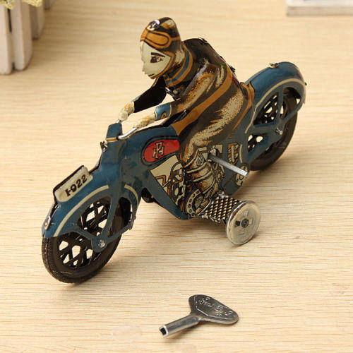 THIS AUCTION IS FOR A TIN TOY MOTORCYCLE WITH RIDER IN EXCELLENT WORKING CONDITION WITH IT'S WIND-UP KEY. NO MAKERS MARK OR COUNTRY OF ORIGIN VISIBLE.