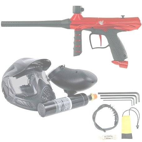 Pack includes: Marker, hopper, 9oz Empty co2 tank, tool kit, barrel sock and GXG Mask.