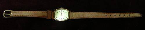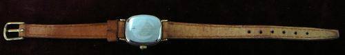 This Ladies Watch dates to the 1950's, and is in working order, I think that it needs winding daily. It has a stainless steel back and a gold coloured front. The leather strap was replaced last year. The face size is 20 mm x 16 mm, strap length is 180 mm.