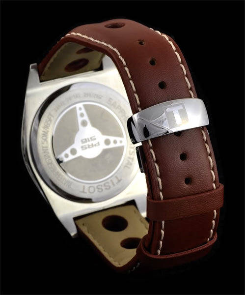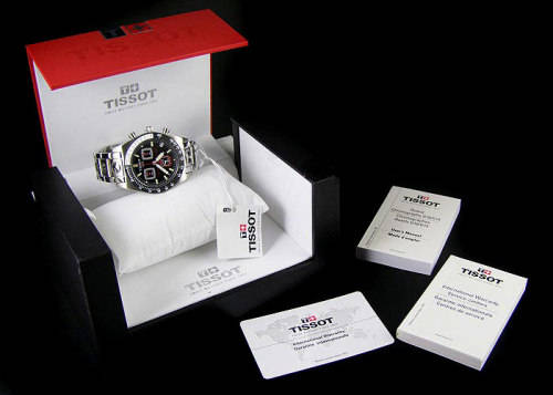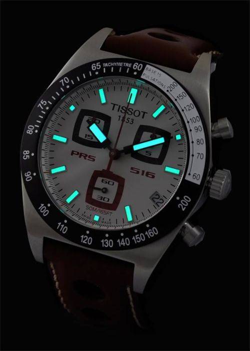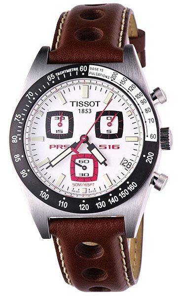 TISSOT PRS516 15 PULSATIONS TACHYMETER CHRONOGRAPH T91.1.416.31 Swiss quartz caliber J562 A heralded racing legacy... Tissot PRS 516 men's chronograph captures the spirit of the renowned classic, originally launched in the 1970's. A celebrated tribute to the sport of auto racing. Polished stainless steel case presented on a handsome leather band with distintive holes, hinting at the holes often found on the steering wheels of elite sports cars. A stationary bezel in contrasting black and white bears a tachymeter scale in black, used in determining the speed of a vehicle travelling over a set distance, as wel as a pulsometer scale in white. A pulsometer is used to determine a person's pulse rate. The PRS516 is graduated for 15 pulsations, meaning an operator counts 15 beats of a pulse after the chronograph button is pressed . At the 15th pulse, the second hand shows on the pulsometer scale what the pulse rate is. The white dial features three sub dials trimmed in black, displaying 1/10th seconds, small seconds and chronograph minutes. Luminous hands and hour markers ensure outstanding visibility in dark conditions, while the anti-reflective sapphire crystal glass, one of the hardest substances known to man, ensures most excellent resistance to scratches. The stainless steel screw in case back proudly bears the Tissot racing wheel design logo, further capturing a legacy of auto racing in a classic PRS516 design. ![]() Tachymeter. Pulsometer-Graduated for 15 Pulsations. Swiss Quartz Chronograph-measures up to 30 minutes in 1/10th Second Increments. Date Display at 4 O'clock. Anti Reflective, Virtually Scratch Proof Sapphire Crystal. Push button hidden deployment clasp. Water Resistance Rating- 50 meters. Case size: 40mm (Excl. Crown) x 10mm. Bracelet width: 18.5mm Brand New and 100% Authentic Guaranteed. |