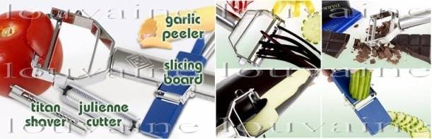 The Titan Vegetable Shaver and peeler is the one time saving tool that no kitchen should be without. With its patented technology, vegetable slicing and peeling is made incredibly easy. This vegetable peeling and slicing tool does most of the hard work and makes your vegetable and fruit shaving, slicing, peeling, chopping, chipping and dicing very easy.