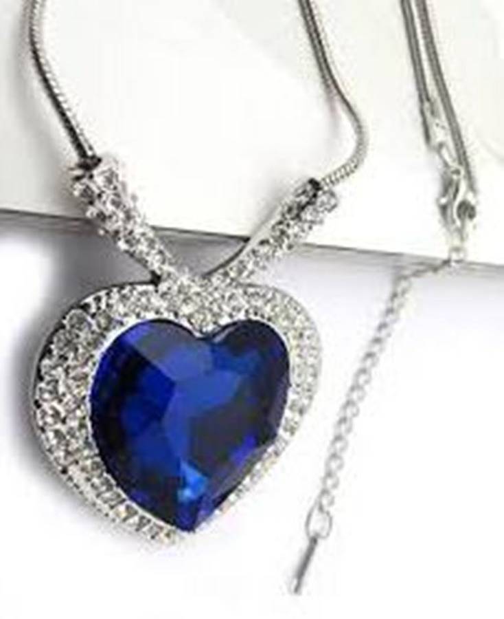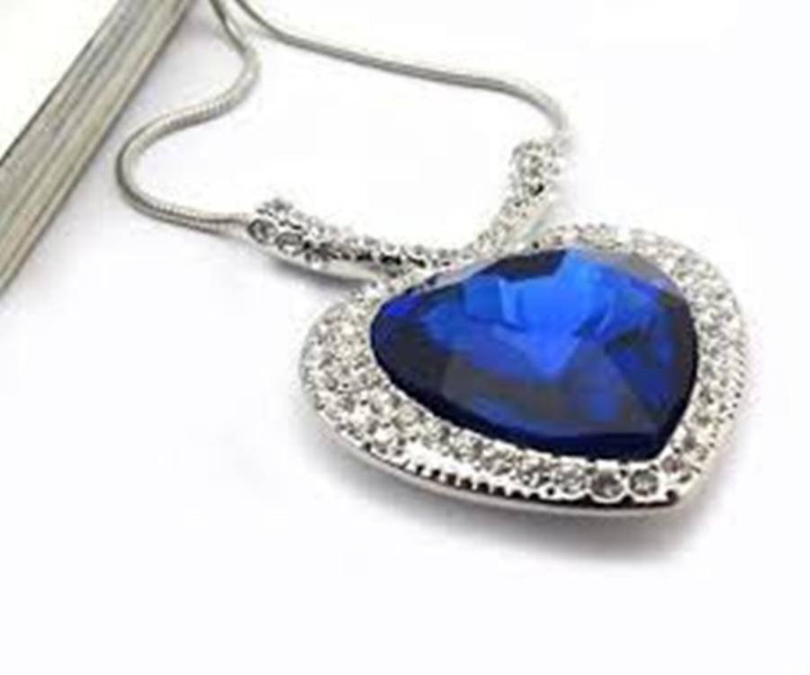 TITANIC AUSTRIAN SAPPHIRE SWAROVSKI ELEMENTS CRYSTAL HEART OF THE OCEAN NECKLACE