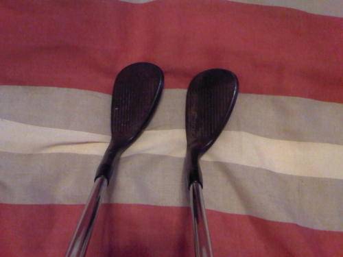 Original titleist spin milled vokey wedges 54 sand wedge 10* bounce and 58 lob wedge 12* bounce both with true temper wedge shafts and fairly new golf pride multi compound grips . note these are the rusty wedges and grooves very good , just selling as they spin rather hectic and chow my prov too , hehe :-)
