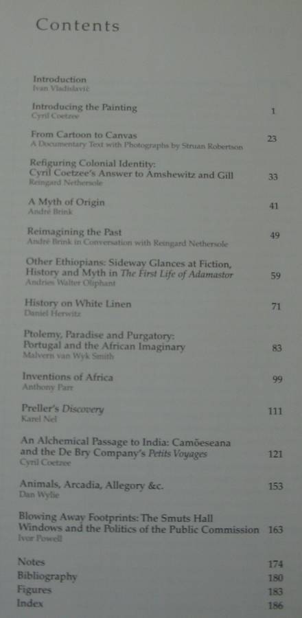 | T’kama-Adamastor: inventions of Africa in a South African painting. Witwatersrand Univ, Jhb. (2000) 1st ed. 4to, 188pp. Numerous ill. in col. & mono. [4 large fold-out col. plates of the 3 paintings in the Cullen Library, and of “Discovery” by Alexis Preller] |
