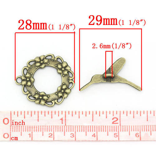 TOGGLE CLASPS - HUMMING BIRD AND GARLAND  - ANTIQUE BRONZE -  28x26mm 29x18mm