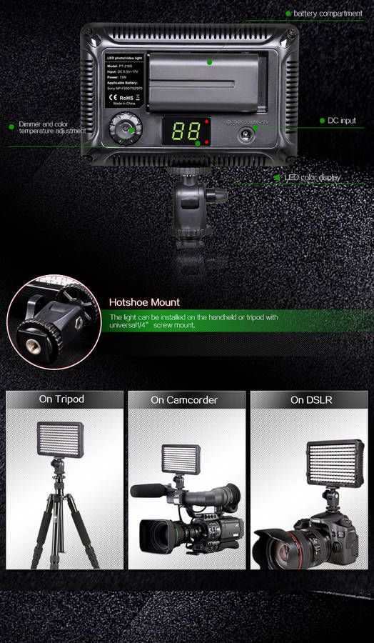 | Lithium Battery Type | NP-F550/750/960 * 1(The battery is not included) |