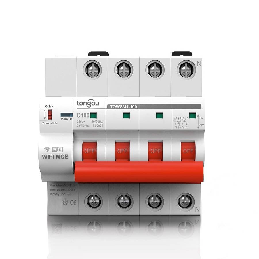 Features: 1.Remote control at anytime from anywhereBy Tuya APP) 2.Voice control with Amazon Alexa and Google homeBy Tuya APP) 3.Automatic reclosing 4.Overload and short circuit protection 5.Over voltage and under voltage protection 6.Timely switch on/off 7.Time delay switch on/off Function: The TOWSM1-100 WIFI reclosing circuit breaker are suitable for 50Hz/60Hz, 230/400V 6~100A circuit which have the function such as automatic reclosing, overvoltage and undervoltage protection, overload protection, short-circuit protection and isolating protection. Meanwhile, this intelligent reclosing circuit breaker have the function as switched off/on globally remote control by smart cell phone.By Tuya app) Application: TONGOU TOWSM1-100 series WIFI intelligent recloser circuit breaker can be widely used in household, factories, student dormitory, farmland, and can intelligently remote control water pump, water heater, underfloor heating equipment,etc. Package included: 1 x WIFI Circuit Breaker Instruction:
