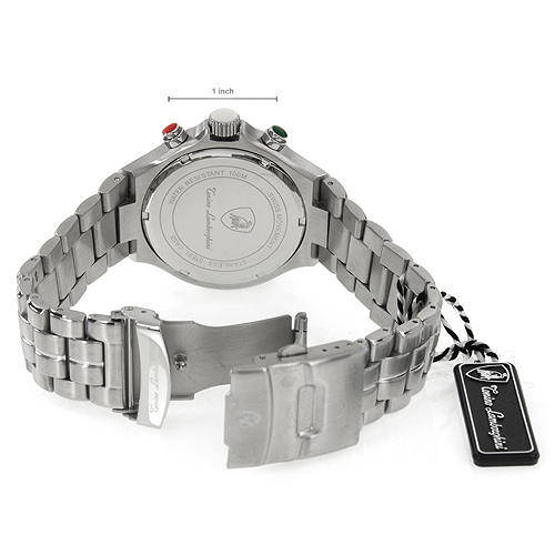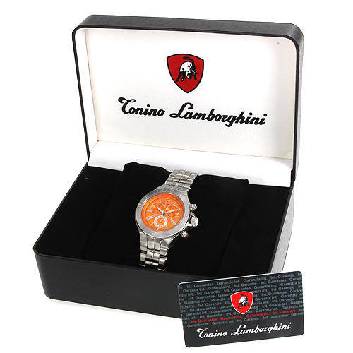 item Watch View details and pricing Tonino Lamborghini condition brand new functions date model en009.103 movement swiss movement Watch Bracelet: material stainless steel color silver max length 8.0 inch Watch Case: diameter 42 mm height 11 mm material stainless steel color silver water resistant 100m other info: style chronograph gender gentlemens