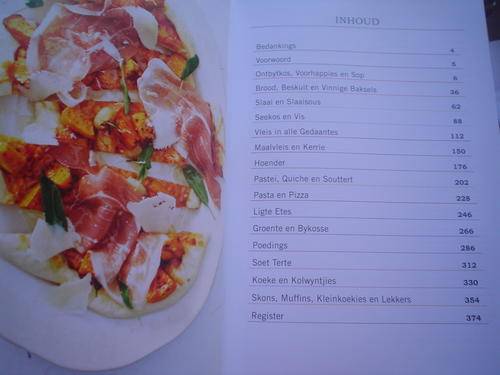 Met 15 hoofstukke wat soet- en souttert, vis en seekos, vleisgeregte en pasteie, asook nageregte en koeke insluit. Gunstelinge soos Wildspastei, Roosterkoekhamburgers, Kaapse kerrie en Goumet-paella laat die mond water. Vir die soettand is daar Rooifluweel-kaaskoek, Baklava en die beste Wortelkoek ooit.
