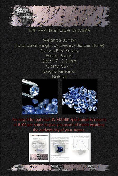 TOP AAA 2.05 ct. Round Cut Blue Purple Tanzanite Lot - Bid per Stone