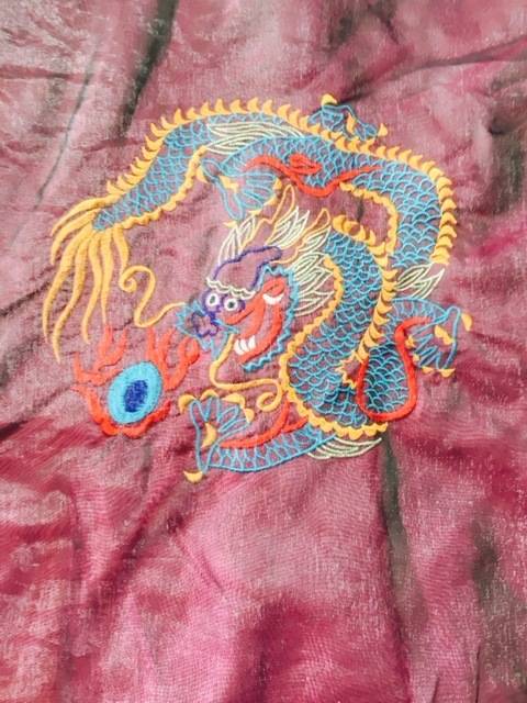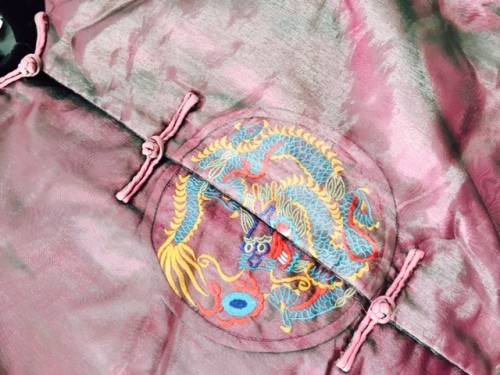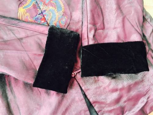 Top Quality Chinese Dragon Embroider Black Gauze Purple Velvet Warm Cotton-Padded Winter Coat/Jacket