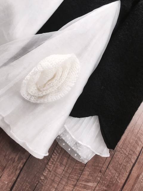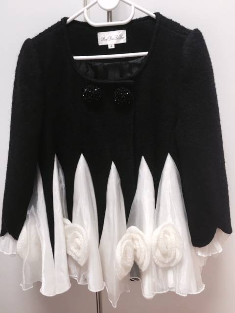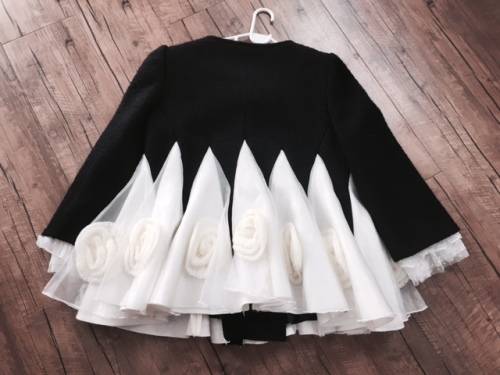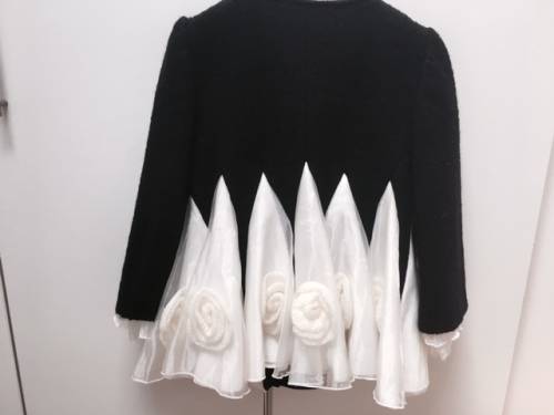 Top Quality Unique Style Black Woolen Warm White Lace Classic Flower Beading Winter Coat/Jacket