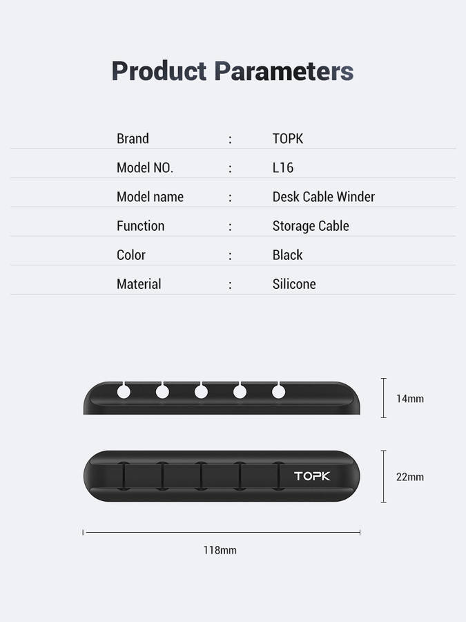 TOPK Desktop Tidy Management Cable Organizer Winder For iPhone X XS HUAWEI XIAOMI MI9 S10 S10+ Da...