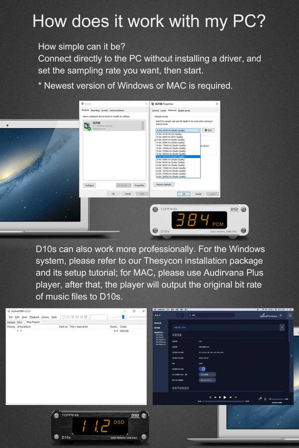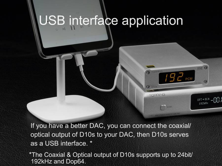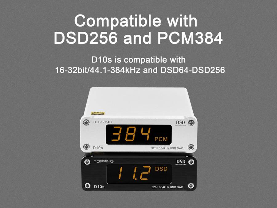 D10s is compatible with 16-32bit/44.1-384kHz and DSD64-DSD256
