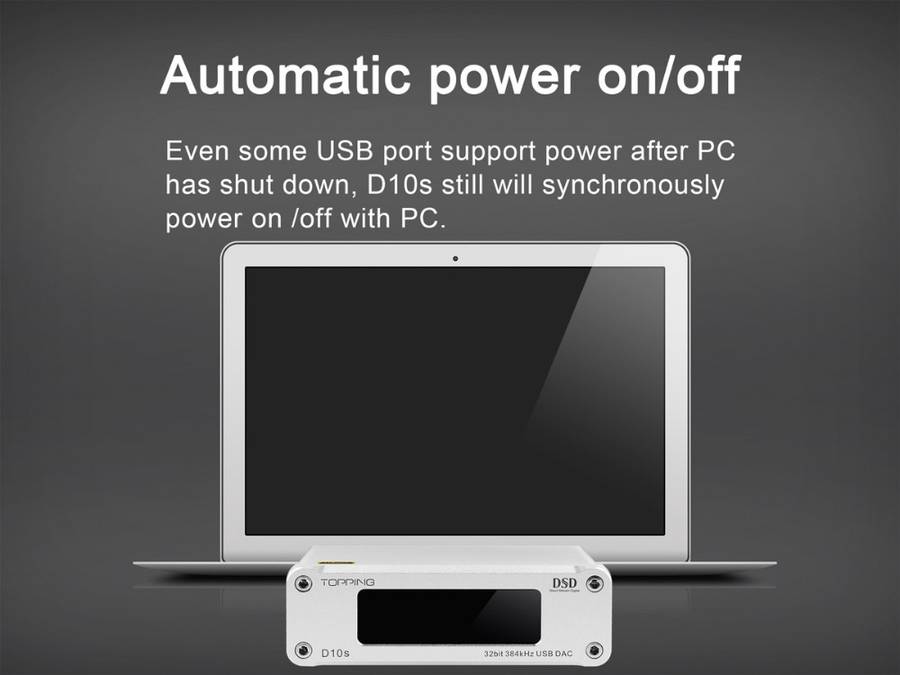 Even some USB port support power after the PC has shut down, D10s still will synchronously power on /off with the PC