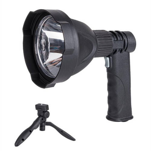 Hand-held rechargeable searchlight with a strong beam of 300m.