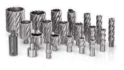 Compared to traditional tooling (twist drills, etc.) annular cutters can multiply your cutting speed by up to 3 times while getting a longer tool life, a more accurate hole, a better finish, with no burrs. The cutting edges distribute the cutting load evenly, thus making it faster cutting.