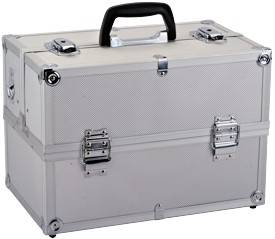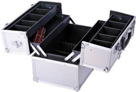 The case is compact with four expanding trays that include deviders to further organise your storage.