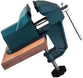 The vice can be fastened with the supplied screw onto the end of a workbench. The vice is used to secure a workpiece within its jaws to allow work to be done on it.