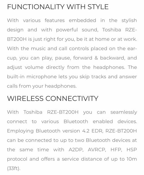 Toshiba Bluetooth Headphones RZE-BT200H Toshiba Bluetooth Headphones RZE-BT200H Toshiba Bluetooth Headphones RZE-BT200H Toshiba Bluetooth Headphones RZE-BT200H