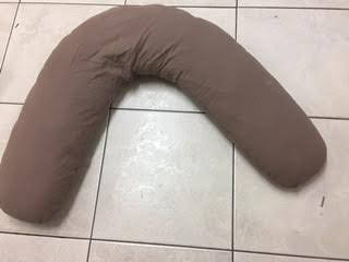Its made from polyester and comes with a custom pillow you can remove for washing. The body pillow helps mom wake up refreshed and invigorated--and after baby is born, it is just right to support mother and child for nursing