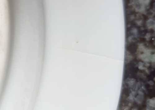 Incredibly beautiful plate with raised hand painted details. No chips but one fine crack (cannot feel it with my nail)