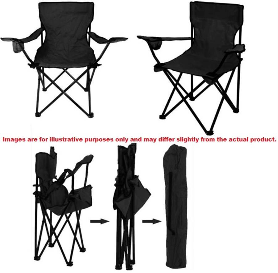 Totally Camping Chair Black - Strong And Durable Steel Frame Construction, Lightweight Polyester Arms, Back And Seat, Built-In Drink And Magazine Holder, Fold-Away Design, Holds Weight Up To 110kg, Carry Bag Included, Perfect Addition To Any Outdoor Space, Retail Box Out of Box Failure Warrant