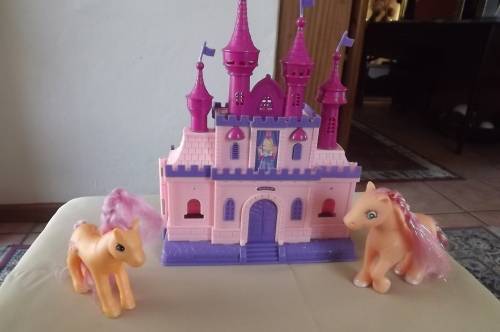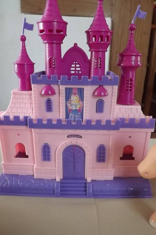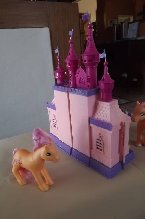 Toy castle 19x26cm in plastic plus 2x ponies.In good condition
