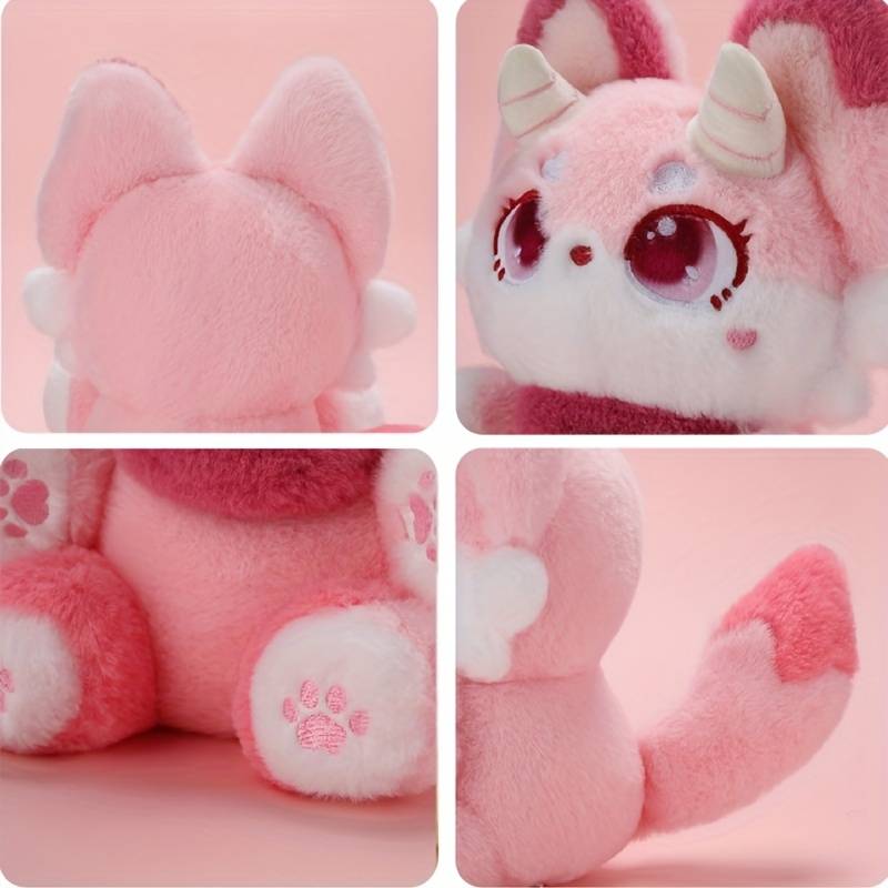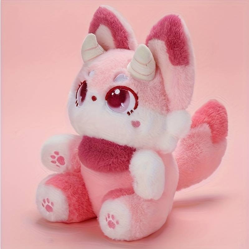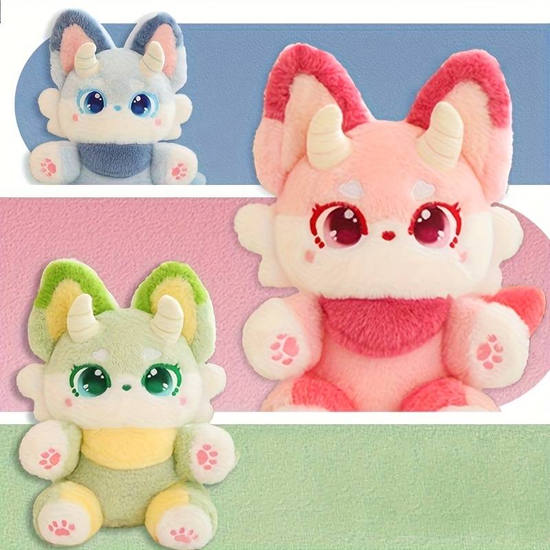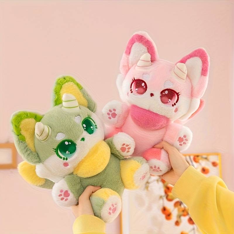 1pc Cute Cartoon Plush Fox Toy with Unicorn Horns - Soft Polyester Stuffed Anima Applicable Age Group:0 Year+ Major Material:Polyester (polyester Fiber) Color:Blue,Green,Pink