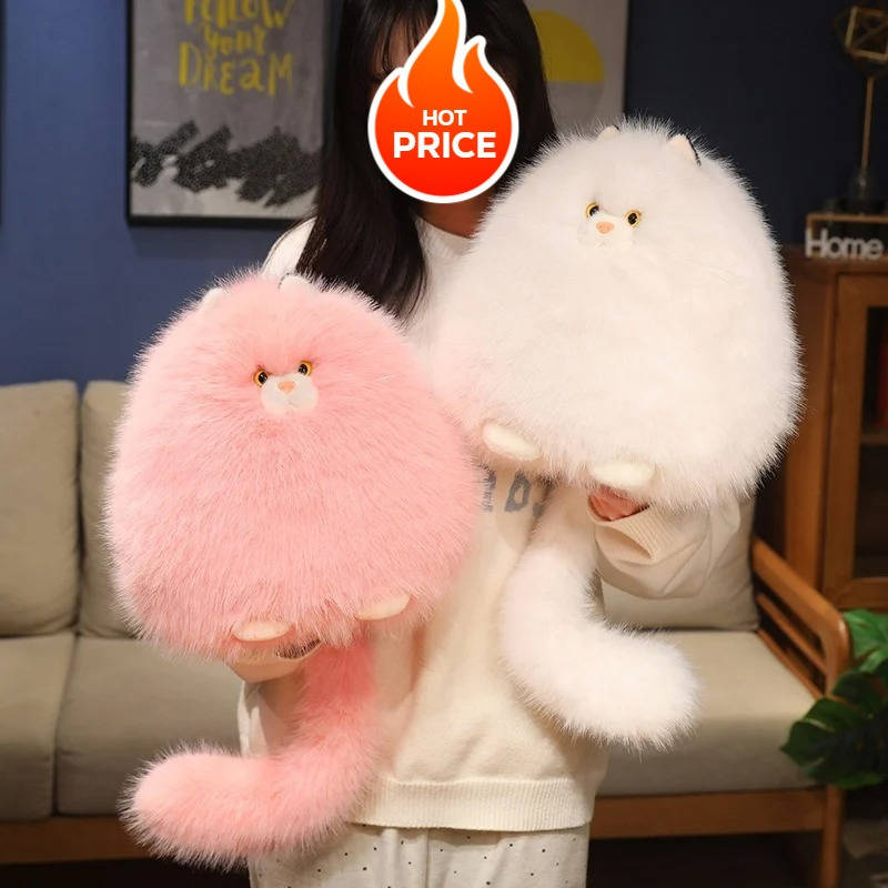 1pc Adorable Plush Cat Toy - Soft Pink & White Fluffy Feline Plush with Yellow E Applicable Age Group:0 Year+ Major Material:Polyester (polyester Fiber) Color:Mixed Color