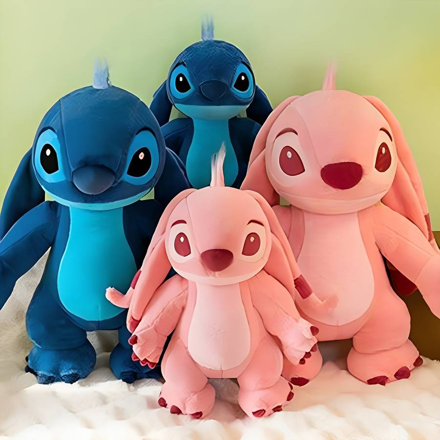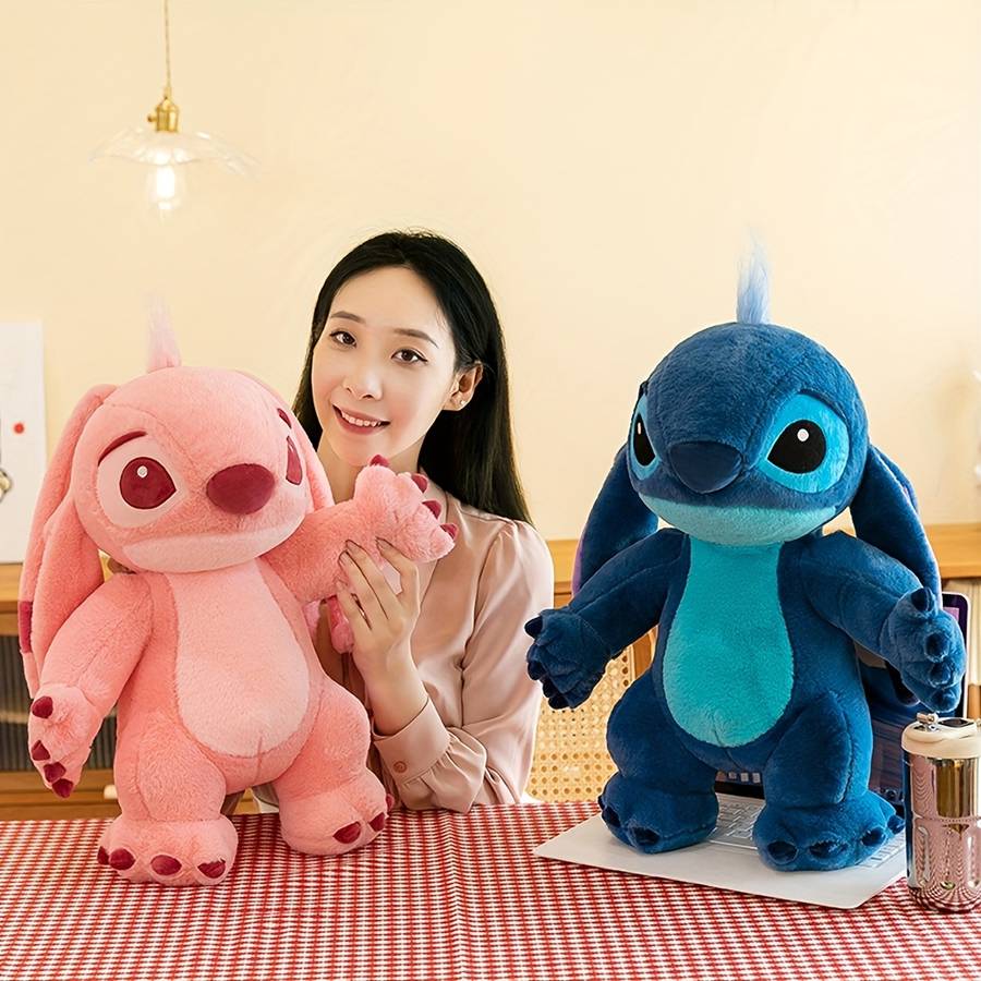 Disney 1pc Couple Stitch Doll Plush Pillow Toy, Pink Angel Room Decor, Car Acces Material:Polyester Applicable Age Group:3 Years+ Color:Mixed Color Weaving Method:Knit Fabric