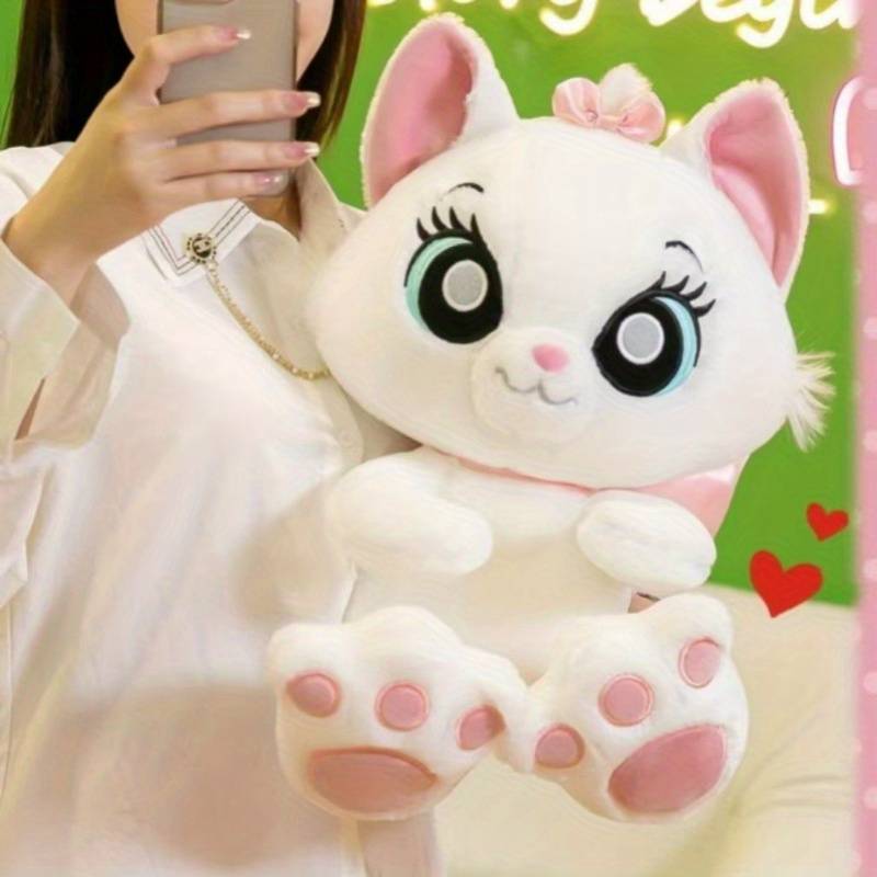Marie Cat Plush Toy - Soft Stuffed Animal with Pink Bow & Hearts, White & Pink D Material:Polyester Applicable Age Group:0 Year+ Color:White,Mixed Color,Pink