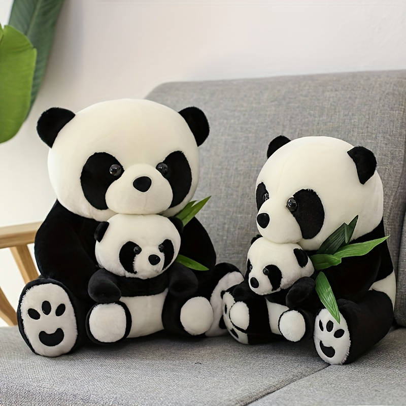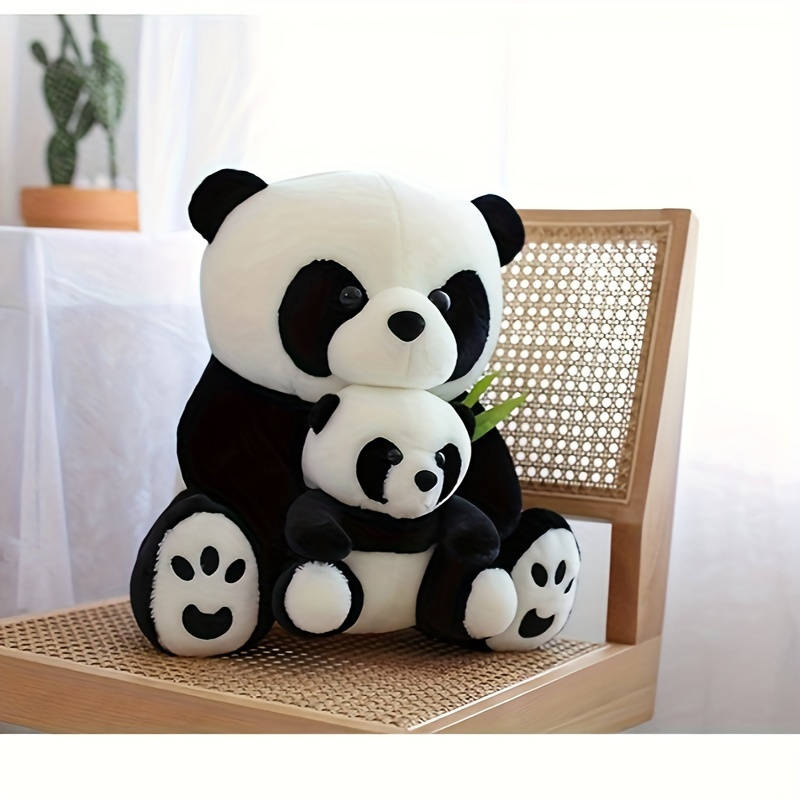 1pc Adorable Giant Panda Plush Toy with Youngsters Doll - Soft Velvet Material, Material:Velvet Applicable Age Group:3 Years+ Color:White,Black