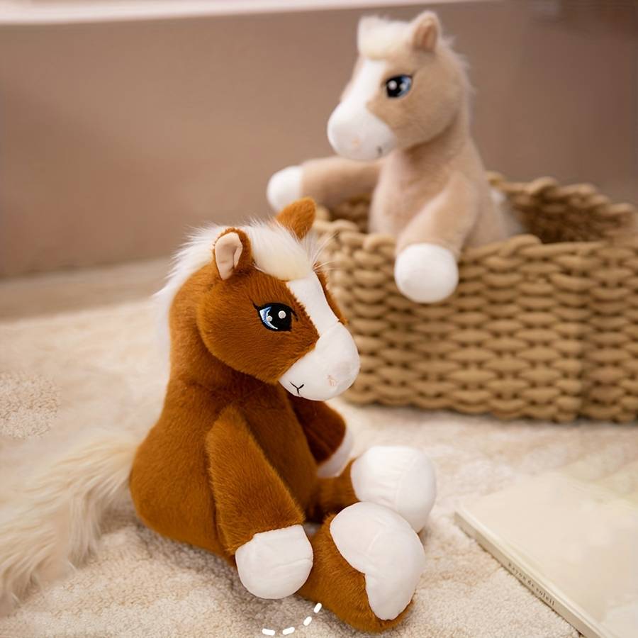 Toy Dolls color Dark Brown size 32cm 12.6in color Dark Brown size 32cm/12.6in (Specifications as per details) 1pc Cartoon Horse Plush Toy 32cm/12.6in - Khaki/Light Brown/Dark Brown, Soft & T