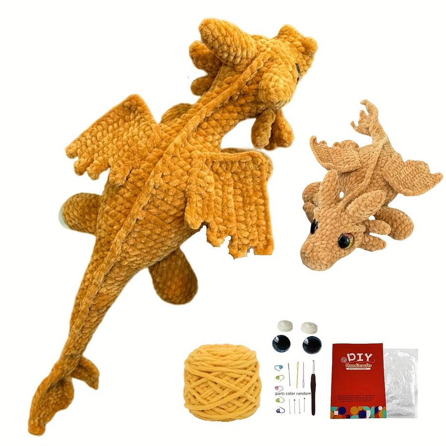 Toy Dolls Style Black Ice Sliky Fiber Fabric Dragon Style Black Ice Sliky Fiber Fabric Dragon (Specifications as per details) 1Set Animal Crochet Kit for Beginners, Beginner Crochet Kit for Adults with Step