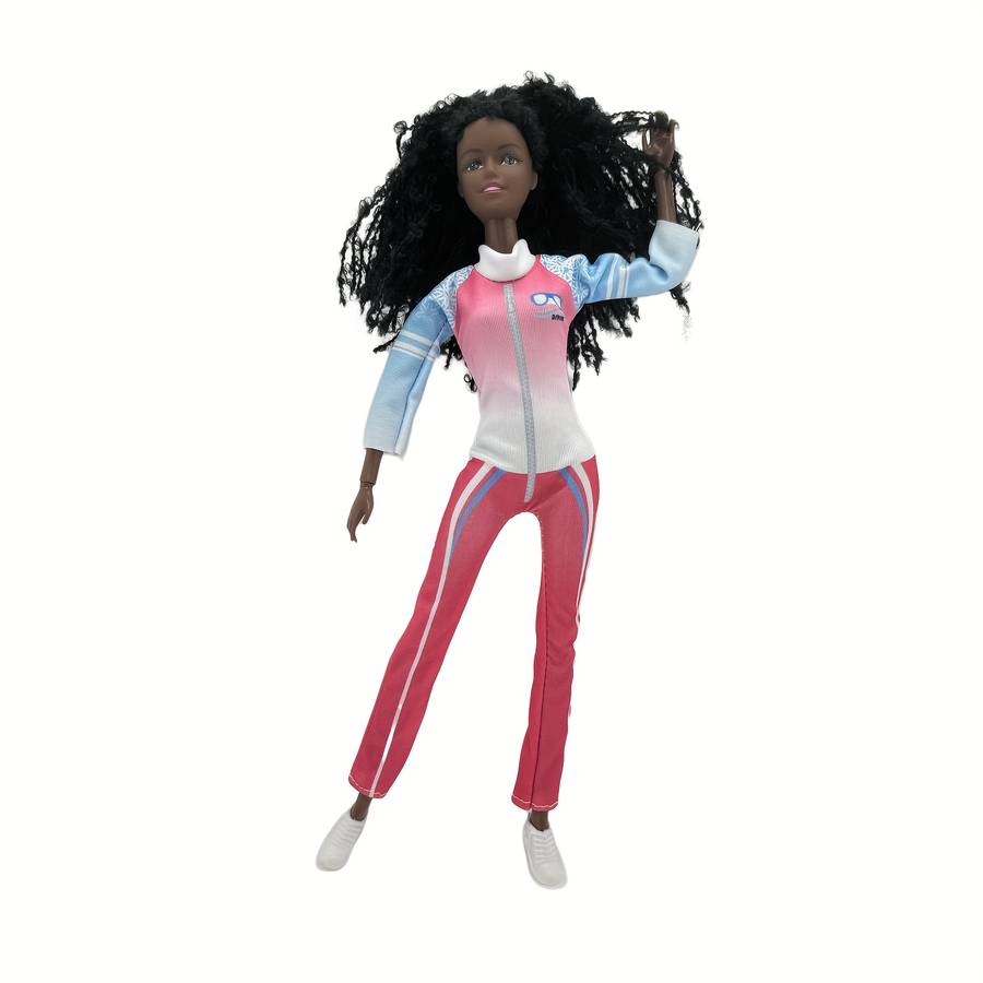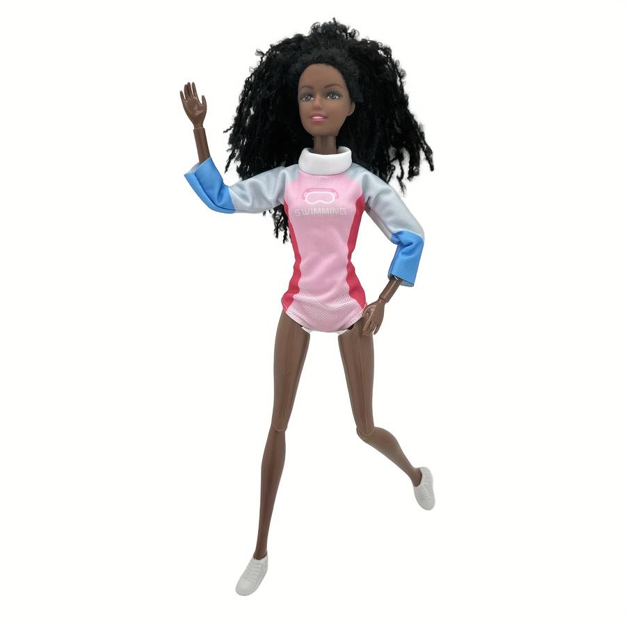 30Cm Black Skin Curly Hair Doll - Play 66 Sports Collection: One Doll + Outfit +