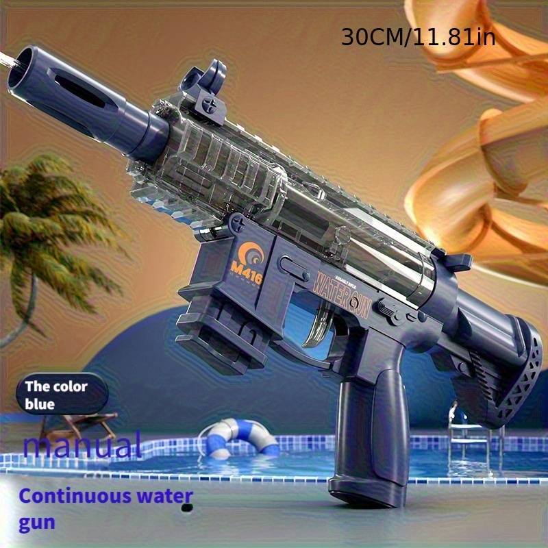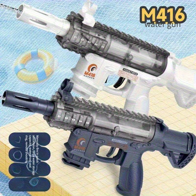 Toy Guns Color Black color Black: (Specifications are subject to this detail) Manual M416 Water Gun for Kids - Tactical Military-style water blaster with Pull Power Mode:Uncharged Major Material:Other Plastic Applicable Age Group:3 Years+ Color:Red,Black,Blue