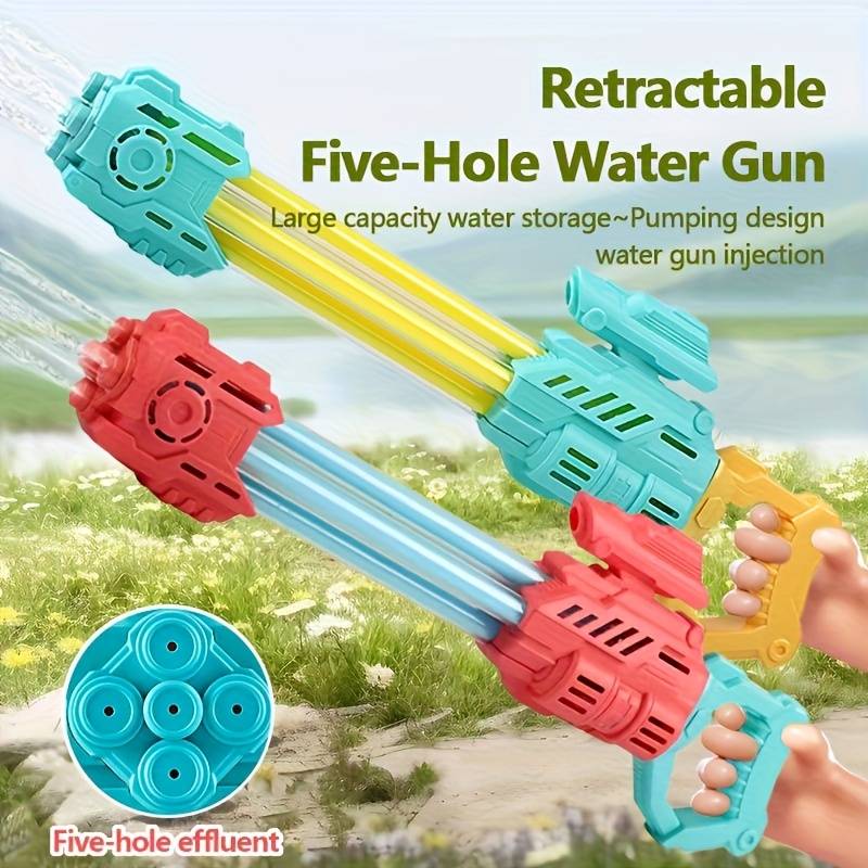 Toy Guns Color Yellow color Yellow: (Specifications are subject to this detail) A New Water Gun Toy, Pull-Back Five-Nozzle Jet, Long Range Water Cannon for Adul Power Mode:Uncharged Major Material:PP Applicable Age Group:3 Years+ Color:Red