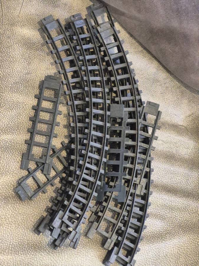 14 tracks, mostly curved. The Mobil Oil car is a bit bent at the bottom. All the others seem perfect. Please look at all the photos.