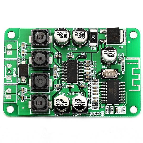 TPA3110 DC 10V-25V 2x15W Dual Channel Wireless Bluetooth Audio Power Amplifier Board For 4/6/8/10 Ohm Speaker Parameter: 1. Audio Input: Wireless Bluetooth 2. Max. Receiving Distance: 10 Meter 3. Power Output: Dual-channel 15W+15W 4. Applicable Speaker Impedance: 4/6/8/10 ohm 5. Supply Voltage: DC 10~25 V(recommended DC 12V More than 2A) 6. Power Supply Interface: 2.54 mm x 3PIN 7. Speaker Interface: 2.54 mm x 2PIN 8. Size(L*W*H):58 x 38 x 10 mm Feature: 1. Dual channel of 15W+15W power output. 2. Sound quality is very good by using this module. 3. Wireless Bluetooth audio input and the Max. receiving distance is 10 M. Package included: 1 x TPA3110 2x15W Bluetooth Audio Power Amplifier Board