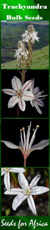Trachyandra Hirsutiflora - Seeds Trachyandra is a genus in the Asphodelaceae family. Species are native to southern and tropical east Africa and Madagascar. The majority of the species are from the Western Cape. They are tuberous or rhizomatous perennials, occasionally shrublets, with short lived white star shaped flowers with six petals and six stamens. Leaves are fleshy, sometimes hairy. Growing to 60cm with white flowers with pink on the reverse. Flowers winter-spring. Great potting specimen. USDA Climate Zone - 8 Season to Sow - Autumn The bid price is per seed. The final price will be your winning bid price multiplied by the quantity of seeds bid on. Click here for different sized packs of this species. Other Fine Brands & Products We Recommend