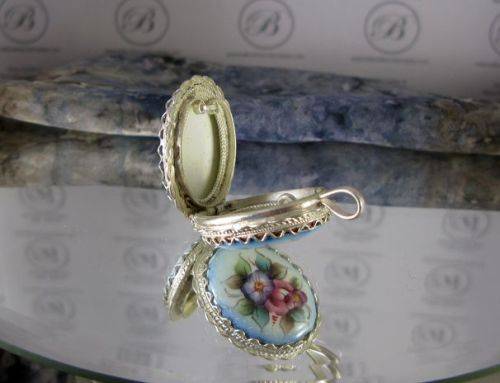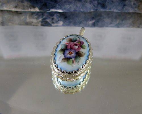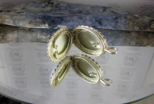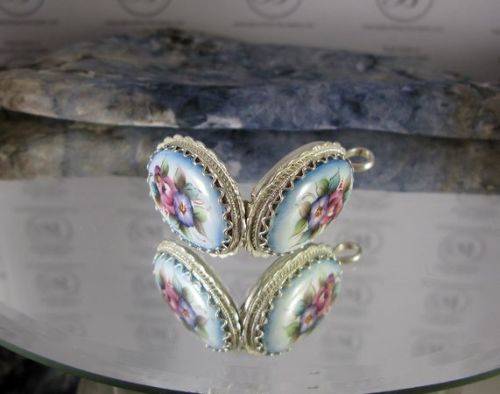 Russian "Finift" enamels are created by painting a glass-like substance onto a metal plaque, then firing it in a kiln. Russian artisans mastered the technique of painted enamels by the late 17th century. The first mention of an enamel workshop in Rostov, Russia, was in the 1760's. Since that time, craftsmen in Rostov have produced beautiful religious works, landscape and portrait miniature, jewelry and other objets d'art. These jewelry sets, in which the enamels are set in an intricate framework of copper silver plated, are examples of the Rostov artists' poetic and lyrical vision of the beauty of the Russian land, and the creative human spirit.