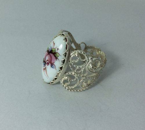 Traditional Vintag Style Russian Enamel "Finift" Silver plated Ring. Hand Made, with beautiful filigree work! Hand Painted Enamel plaque made in world famous "Finift" from Rostov City the only one place still making this type of enamel which was started by archbishop of The Great Rostov City Monastery in XVII Century. Artists mostly using silver plated metal , because this type of metal is softer and easy to use in complicated designs with fragile enamel plaques.