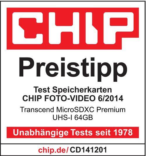 Transcend 64GB MicroSDXC Class10 UHS-1 Memory Card with Adapter 45 MB/s (TS64GUSDU1E)