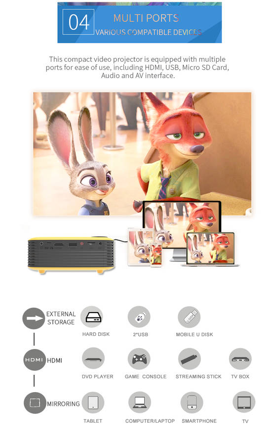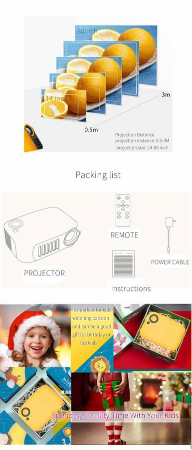 | Packing Including | 1x Mini Projector 1X User Manual 1X Power Cbale 1x Remote Control |