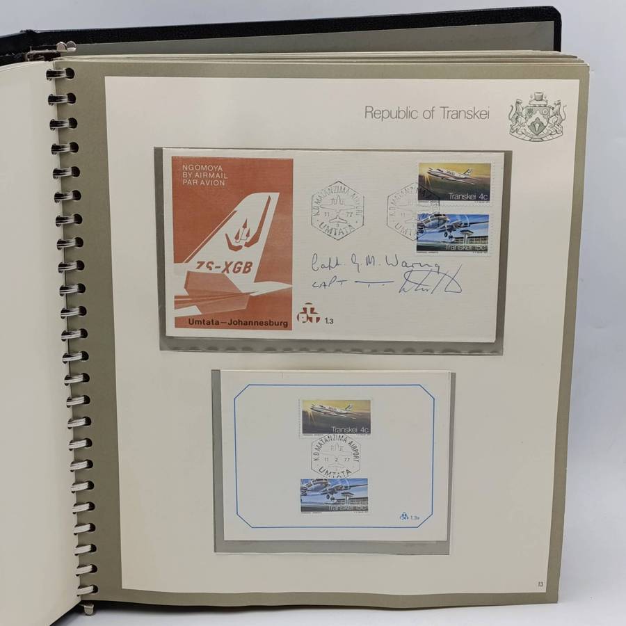 Transkei pre printed album with stamps from 1976 to 1981 total of about 780 stamps mint and used on coverĀ