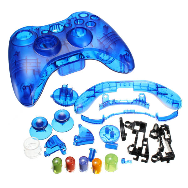 Transparency White Blue Green Plastic Shell for Xbox 360 Wireless Controller Keep your Xbox 360 Wireless Controller safe and protected with style with this shell. Works exactly the same as the original shell. All buttons, screws and battery cover are included. Made of brand new and high quality material, very durable. Ideal replacement for your broken or dysfunctional Xbox 360 Wired Controller. Make your wired controller look fresh. appearance and comfortable to feel.